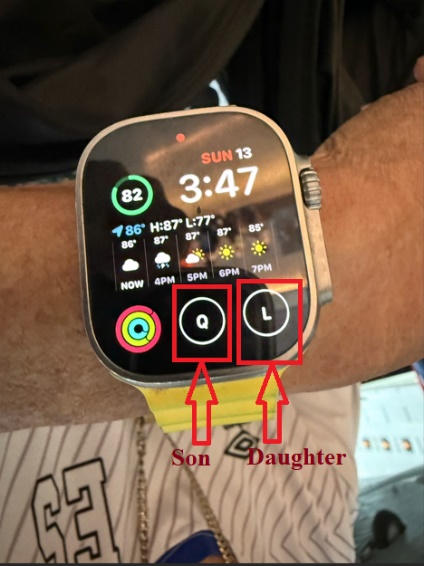 Follow these steps to set up a senior-friendly watch face with weather, activity rings, and speed dial buttons for your two favorite contacts (e.g., Son and Daughter):